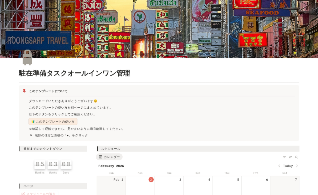 そこでNotion公式バッジ所有の私が、駐在準備を体系的に管理できるNotionの「駐在タスク管理オールインワンテンプレート」を作りました。