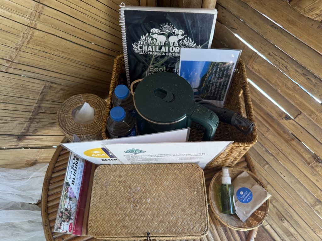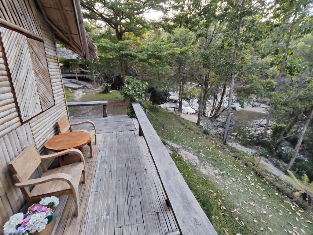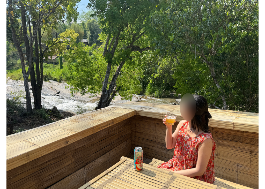 私はリバーサイドの7号室に宿泊しましたが、お部屋から水浴びする象を眺められるのは最高のご褒美でした!ただ、受付までの坂道(徒歩10分)がかなり急。移動用のソンテウもありますが、時間や体力に余裕がない方はマウンテンサイドが安心です。