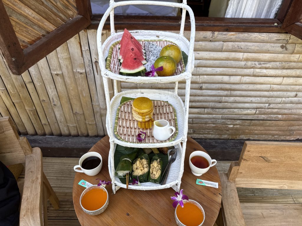 朝食はカフェで作ったごはんをお部屋まで運んできてくれます。