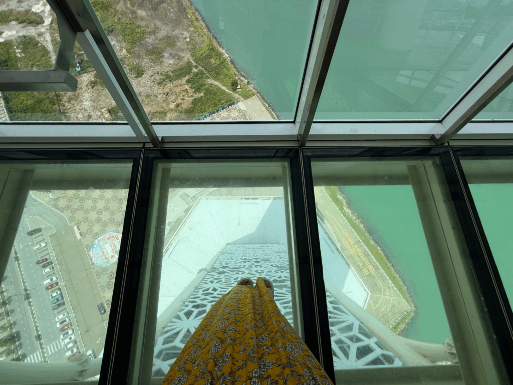 33階にはスカイデッキがあり、床がスケルトンで360度のシービュー&シティビューとなっています。