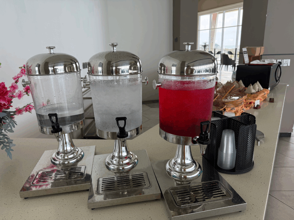 あとはストロベリーシロップ?のような控えめな甘さのドリンクと、常温水、冷たい水の3種類があります。
