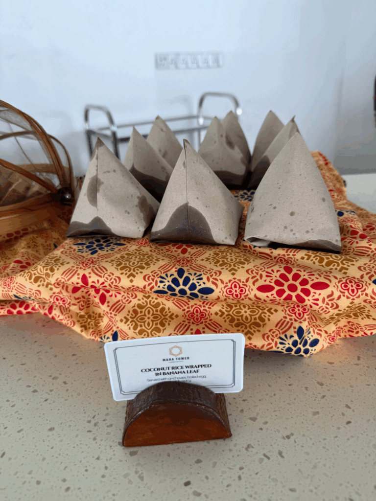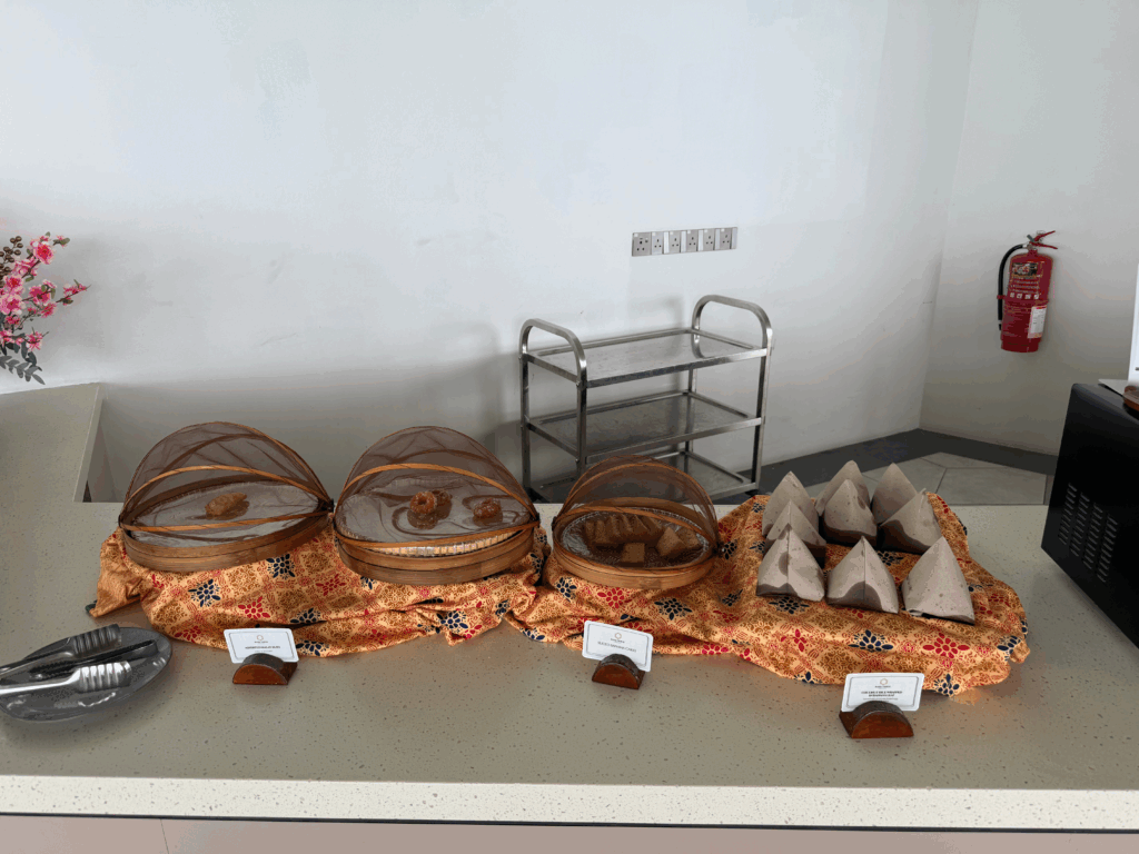 軽食はバナナの葉で包まれたココナッツライスや、サモサのようなしょっぱいタイプと、ドーナツやバナナケーキのようなスイーツと、スナック類の3種類。