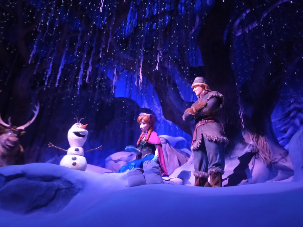 アナとエルサの幼少期にドア越しで話すシーンや、エルサが歌う「レット・イット・ゴー~ありのままで~」のシーンなど、映画の世界観を忠実に再現していて、ゲストを飽きさせない演出が満載です!